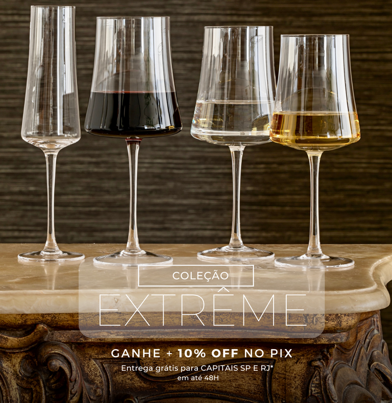 R$ 89,10PIX 10% OFFPreço original R$ 570,00 - Preço original R$ 570,00Preço original R$ 570,00Preço atual R$ 99,00Preço original R$ 570,00R$ 99,00 - R$ 99,00Preço atual R$ 99,00Jogo de Taças de Vinho Espumante Cristal Colorido Coleção Extreme Colors 210ml 6 Peças